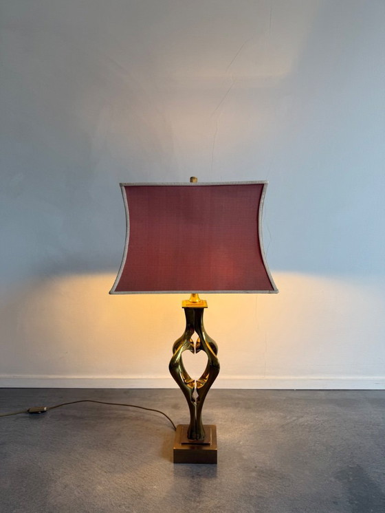 Cette lampe de table vintage de Willy Daro est une pièce étonnante qui allie élégance et fonctionnalité. Dotée d'une base sculpturale en laiton au design complexe, elle est complétée par un abat-jour en textile rouge (l'abat-jour n'est pas inclus dans le prix mais peut être acheté séparément). La lampe dégage une lueur chaude et accueillante, parfaite pour ajouter une touche de charme vintage à n'importe quelle pièce. Son design unique en fait une pièce à part pour les collectionneurs et les amateurs de décoration du milieu du siècle.
