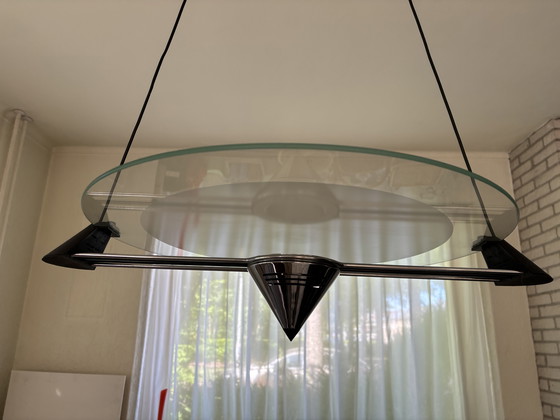 Cette lampe suspendue Lamperti est un bel exemple de design Art déco, avec une combinaison élégante de métal et de verre. La silhouette élégante et les formes géométriques de la lampe en font un point focal parfait pour n'importe quelle pièce. La lampe est conçue pour une puissance maximale de 150 W, ce qui permet d'éclairer suffisamment votre espace. Le verre transparent et la finition en métal argenté ajoutent une touche de sophistication et de modernité.