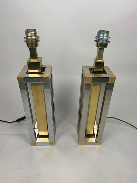 Ces lampes de table, conçues par Stéphane Davidts pour WKR dans les années 1980, présentent une combinaison frappante de tons dorés et argentés. Le design géométrique et la finition métallique leur confèrent une esthétique caractéristique des années 1980. Elles sont parfaites pour ajouter une touche d'élégance vintage à n'importe quelle pièce.