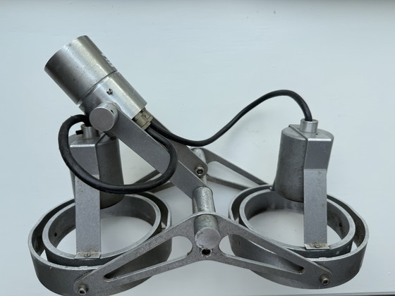 Il s'agit d'une lampe suspendue modulaire de NOMAD au design élégant et moderne. La lampe est fabriquée en métal durable avec une finition argentée et un câblage noir. La lampe est conçue pour être ajustable, ce qui permet des arrangements d'éclairage polyvalents. Elle fonctionne sur 230V et convient aux ampoules halogènes. Malgré quelques rayures visibles, elle reste en bon état et constitue un ajout élégant à toute pièce moderne.