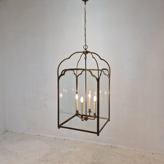 Remontez le temps jusqu'à l'époque élégante de la Régence avec cette exquise lanterne en laiton du XXe siècle, qui rend hommage aux goûts raffinés et à la splendeur architecturale de l'époque. Inspirée par les conceptions visionnaires d'architectes renommés de la Régence, cette lanterne est un hommage aux goûts raffinés et à la splendeur architecturale de cette époque.