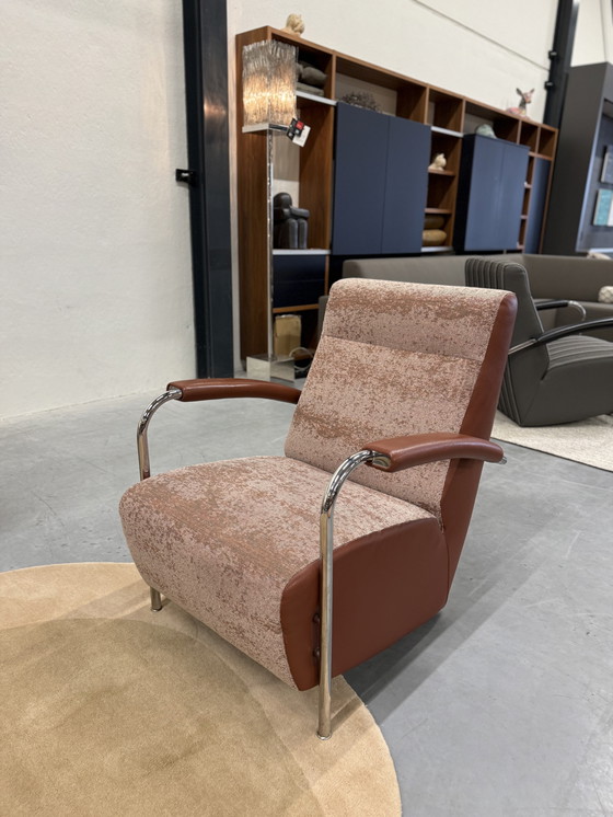 nieuwstaat leolux scylla hoog fauteuiluitgevoerd in Memory stof & Senso leder in de kleur Rust.