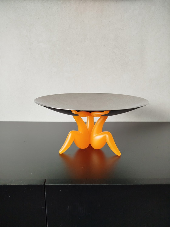 Coupe à fruits emblématique de 1996. Rare car il n'est plus produit par Alessi depuis un certain temps. Un objet élégant, stylé et décoratif, mais tout aussi fonctionnel. Fabriquée en acier inoxydable et en résine orange. Traces de micro-rayures minimes dues à "l'âge". Jamais utilisé, juste exposé. Largeur 29cm Profondeur 29cm Hauteur 14cm