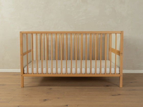 Lit d'enfant indépendant de la collection "Profilsystem" de Flötotto des années 1970. Cadre de haute qualité avec un coffre de lit en hêtre massif et revêtement Formica original en gris clair. Matelas inclus.