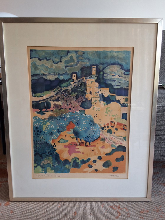 Plongez dans l'univers enchanteur du « Village d'Eygalière » de Guy Charon. Cette lithographie capture l'essence d'un charmant village français avec des couleurs vibrantes et une composition dynamique. Elle vous invite à découvrir l'atmosphère sereine et vibrante des paysages du sud de la France.