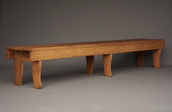 Un très long banc à lattes en bois de chêne massif. Ce banc serait un superbe ajout à tout intérieur élégant. Il est très pratique et peut être utilisé dans un couloir, un salon ou une chambre à coucher. Légers signes d'âge et d'utilisation.