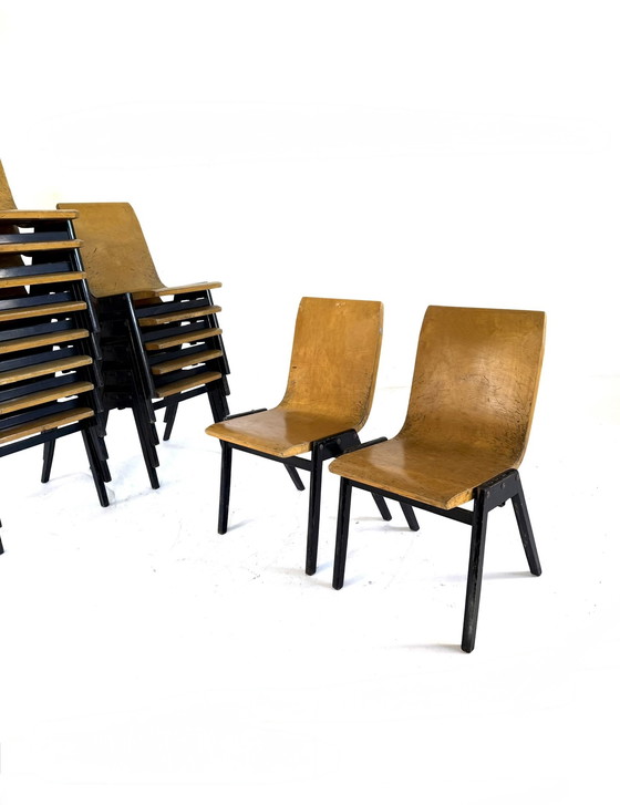 Lot de 15 chaises empilables en contreplaqué, Ronald Rainer '50