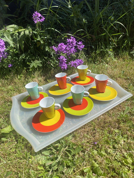 Découvrez le charme des années 1970 avec cet ensemble exquis de 6 tasses et soucoupes à espresso de Geneviève Lethu. Chaque pièce de cette collection rare présente un design pop art vibrant, rappelant l'esthétique colorée et audacieuse des années soixante-dix. Parfaites pour ajouter une touche vintage à votre rituel du café ou pour compléter votre collection de vaisselle.