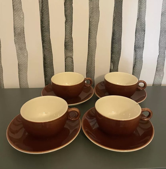 Service à café pour 4 personnes de la maison Pagnossin Treviso Italy. Vintage. Couleur marron. Design minimaliste 70.