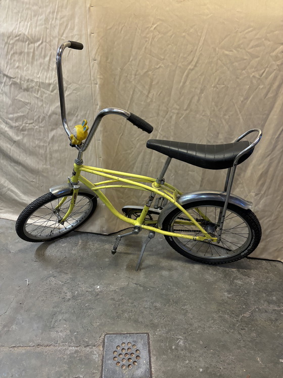 Remontez le temps avec ce charmant vélo vintage low rider, une pièce ravissante qui respire la nostalgie et l'élégance. Son cadre jaune vif attire le regard, tandis que la selle noire épurée et les détails argentés ajoutent une touche de raffinement. Parfait pour la collection ou les balades, ce vélo témoigne du savoir-faire et du design classiques.