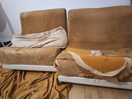 Par rumalder-'orbis' loungestole designet af Luigi Colani og produceret af Cor i 1970'erne, to sofa-loungestole og en hynde.