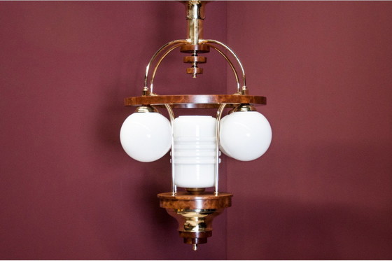 Très bon état, après rénovation professionnelle du bois et inspection électrique. Le lustre est entièrement fonctionnel.