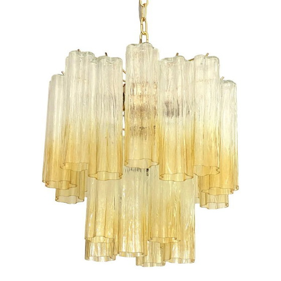Lustre contemporain de luxe en verre de Murano « Tronchi » ambré transparent de style Venini
