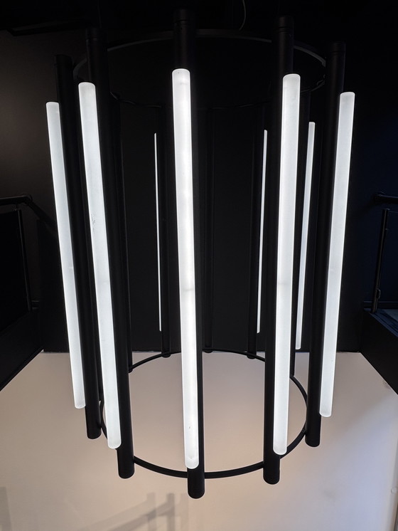 Le lustre Pipeline Chandelier 6 d'A-N-D est une imposante suspension architecturale composée de six éléments LED cylindriques. Disposés selon une géométrie épurée, ils offrent un équilibre harmonieux entre rythme et asymétrie. Grâce à sa finition raffinée et à son design minimaliste, ce lustre constitue un point focal sculptural dans les grands espaces à hauts plafonds.