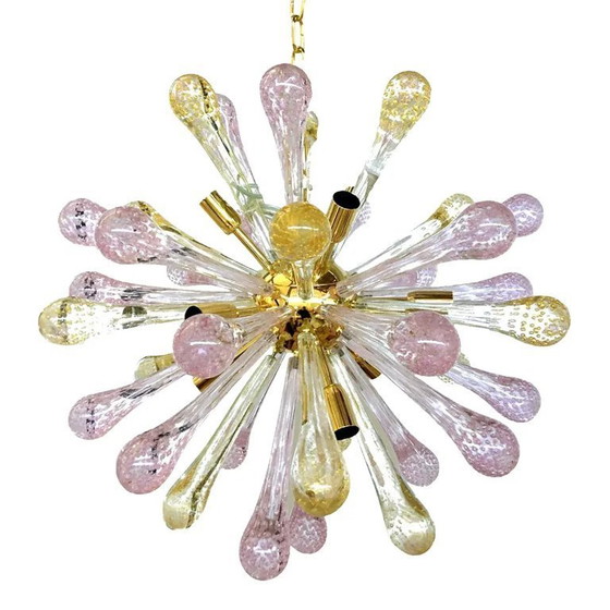Lustre Sputnik en verre de Murano avec des gouttes d'air dorées et roses