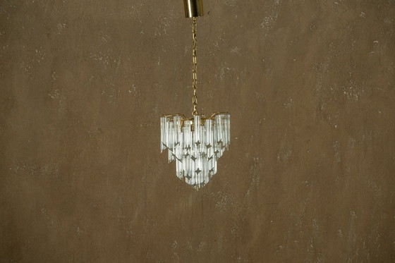 57 cristaux de verre Murano et un cadre en laiton créent un look intemporel. Il convient parfaitement aux intérieurs classiques ou modernes. Ce lustre est une trouvaille rare qui met en valeur la magnifique interaction entre le cristal et le métal, offrant à la fois style et fonction.