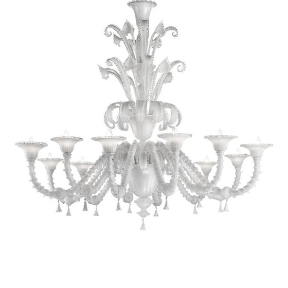 Lustre vénitien blanc "Cà Rezzonico" en verre de Murano