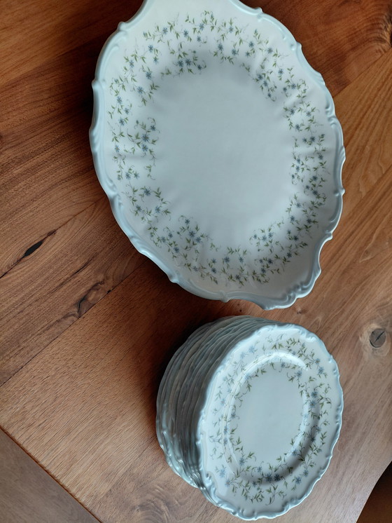 Magnifique service à gâteaux Royal Albert. Grand plat de 32 cm, 12 assiettes de 16 cm.