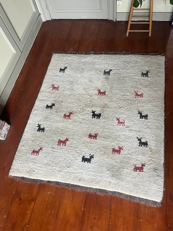 Ce magnifique tapis persan Gabbeh, noué à la main en Iran, apportera instantanément une ambiance chaleureuse et authentique à votre intérieur. Avec ses motifs ludiques et ses couleurs riches, il attire tous les regards et illuminera n'importe quelle pièce.