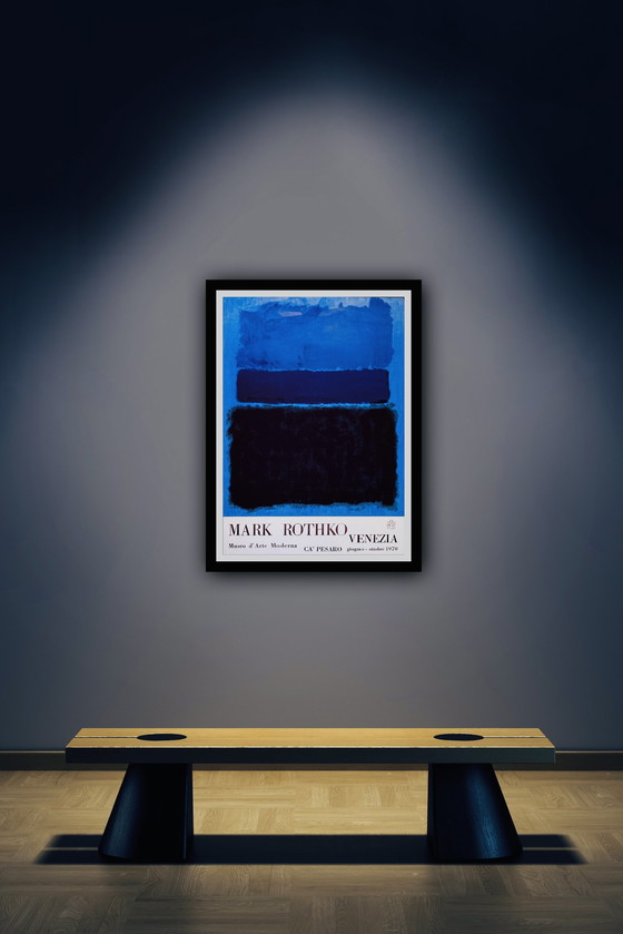Mark Rothko : "Exposition Venezia, 1970". Affiche imprimée en offset de l'exposition de Mark Rothko au Museo d'Arte Moderna Venezia 1970. En excellent état. Elle n'a jamais été encadrée et a été conservée dans des archives sombres entre des papiers protecteurs sans acide. Les photos présentées font partie de la description, le cadre (taille) présenté est à titre d'illustration et n'est pas inclus. Cette œuvre d'art est soigneusement emballée et expédiée dans un papier protecteur sans acide.