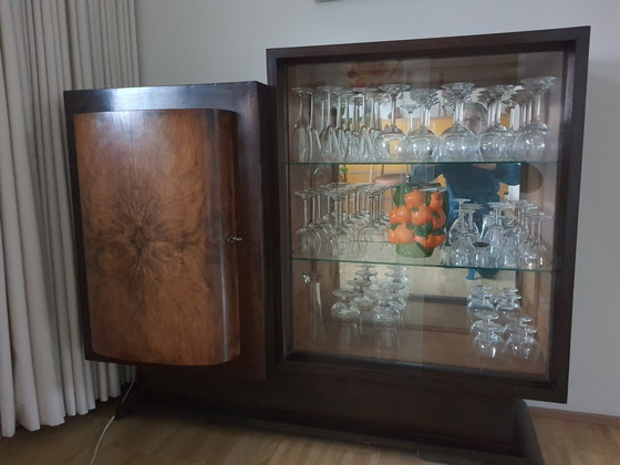 Ce magnifique meuble bar Art déco est une véritable pièce maîtresse dans votre intérieur. Avec son élégante finition bois et ses portes vitrées, il allie style et fonctionnalité. Idéal pour mettre en valeur vos plus beaux verres et bouteilles.