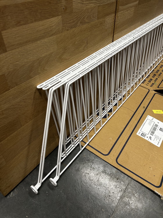 Portant mural String Furniture. Utilisé comme portant à vêtements dans un magasin. Prix d'origine : 2 186 €.
