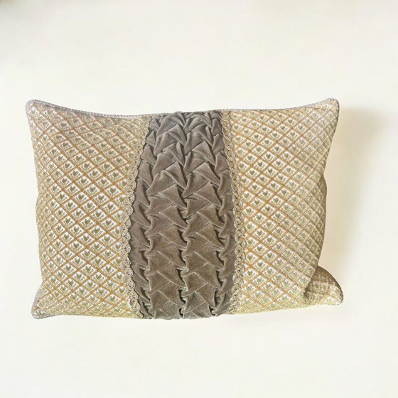 Mid Century large coussin de canapé ou coussin de parade en velours de brocart et velours vert/brun années 1960