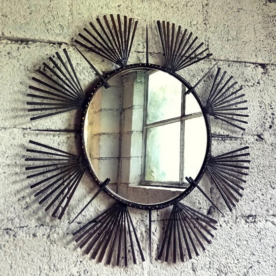 Miroir artisanal soleil fer motif palmes - création pièce unique