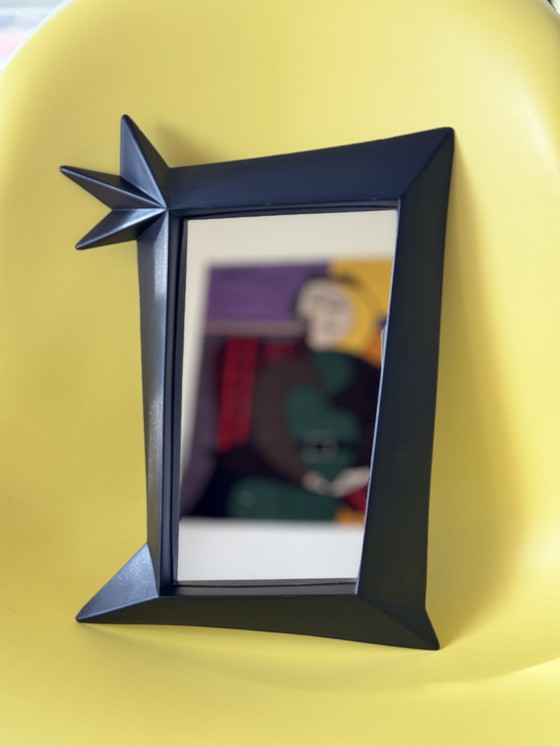 Rare miroir IKEA SILL du catalogue de 1996, en plastique noir, à la forme ludique et postmoderne. Ce modèle s'inscrit parfaitement dans la tendance Memphis/années 90 et est aujourd'hui difficile à trouver.