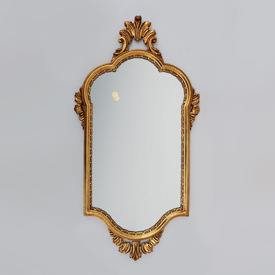 Miroir doré de style baroque du milieu du siècle, France, années 1950