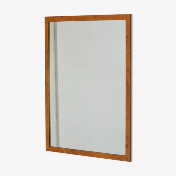 Miroir en "loupe" de bois. France, circa 1970. Petites rayures d'usage. Très bel état. Voir photo. Design chic années 70.