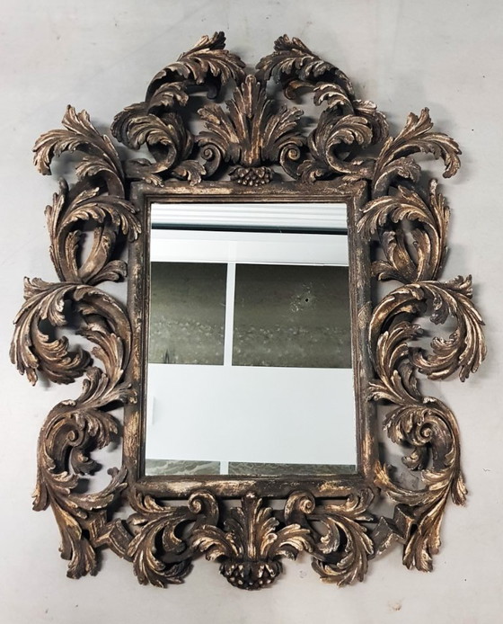 Miroir italien Chelini sculpté à la main dans un cadre en bois magnifiquement sculpté