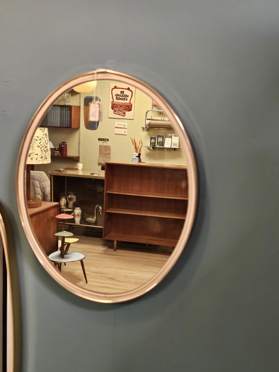 Miroir ovale vintage avec bordure couleur laiton.