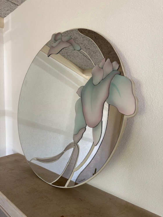 L'étiquette d'origine se trouve au dos du miroir et indique : « David Marshall, division de Sculptors Guild LTD. » Le verre de ce miroir est sculpté à la main selon la tradition ancestrale du vitrail. Il est poli à la main et monté avec le plus grand soin, conformément aux exigences artistiques de Sculptors Guild LTD.