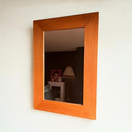 En regardant ce miroir, on peut s'étonner de sa date de fabrication réelle. Ce miroir faisait partie d'une chambre à coucher des années 1920 / 1930, mais sa belle forme rectiligne le fait ressembler à un miroir Scandinavian Mid Century Modern. Le cadre en bois sans prétention convient parfaitement à un tel style d'aménagement et s'harmonise parfaitement avec le teck et les formes claires.