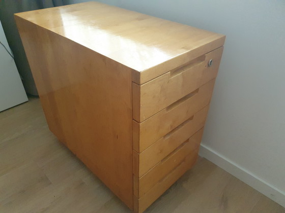 Ce meuble de bureau rétro appartient encore à mon grand-père. Le meuble est très solide. Fabriqué en bois, il offre un aspect chaleureux et classique. Le meuble possède plusieurs tiroirs, idéaux pour ranger des documents et des fournitures de bureau.