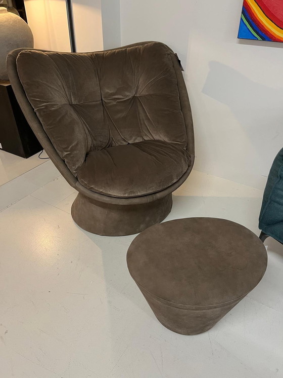 Fauteuil Montis Fabian avec pouf Couleur du rembourrage du cadre : Nabuk Nut L40 Couleur du rembourrage du siège : Burano 47 S30 Couleur du rembourrage du pouf/du tabouret : Nabuk Nut L40 Pieds : Base pivotante
