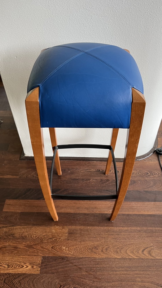Ce tabouret de bar Montis Octopus est une pièce élégante et moderne, dotée d'une assise en cuir bleu remarquable et de pieds en bois robustes. Le repose-pieds en métal ajoute à la fois au confort et à la durabilité. D'une hauteur de 80 cm, il est parfait pour les comptoirs hauts ou les bars. Le design est élégant et contemporain, ce qui en fait un complément idéal à tout intérieur moderne.