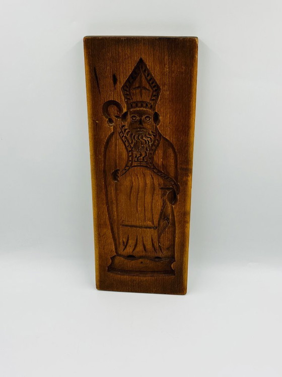 Cette pièce de grand format se distingue par la finesse de sa sculpture : visage expressif, barbe travaillée, crosse épiscopale et mitre finement décorée. L’ensemble témoigne d’un véritable savoir-faire artisanal, typique des moules utilisés pour la fabrication de biscuits de fête en Europe du Nord.