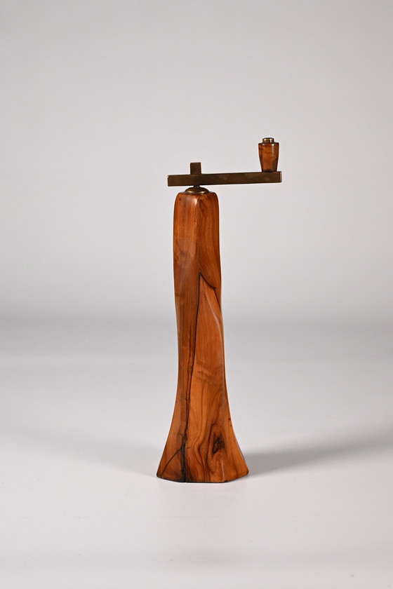 Moulin à poivre vintage français en bois d'olivier avec détails en laiton. Ce moulin fonctionne parfaitement et apportera une touche d'élégance à votre cuisine. Il porte une marque peu lisible, mais est par ailleurs en bon état vintage.
