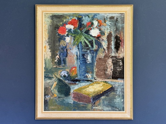 Nature morte expressionniste « Fête florale » huile sur toile (1955) de Leif Nilsson