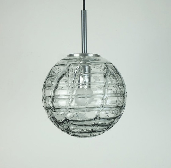no. 2 de 2 - élégante lampe suspendue mid century doria-leuchten verre et métal gris clair et fumé années 60 70 suspension