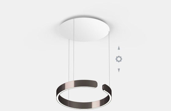 La Sospeso Move réinvente le luminaire Mito, maintes fois primé. D'un simple geste, une pression sur l'application ou la télécommande Occhio Air suffit pour ajuster la hauteur de la suspension. Vous pouvez ainsi régler intuitivement et en continu sa longueur entre 50 et 200 cm. La température de couleur et la diffusion de la lumière sont également personnalisables.