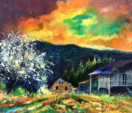 Découvrez une œuvre captivante qui capture l'essence rustique des anciennes granges des Ardennes belges. Cette peinture, avec ses couleurs vibrantes et son ciel dramatique, évoque la beauté intemporelle de la campagne. Les détails minutieux et les contrastes saisissants entre la lumière et l'ombre ajoutent une profondeur et une dimension uniques à cette pièce.