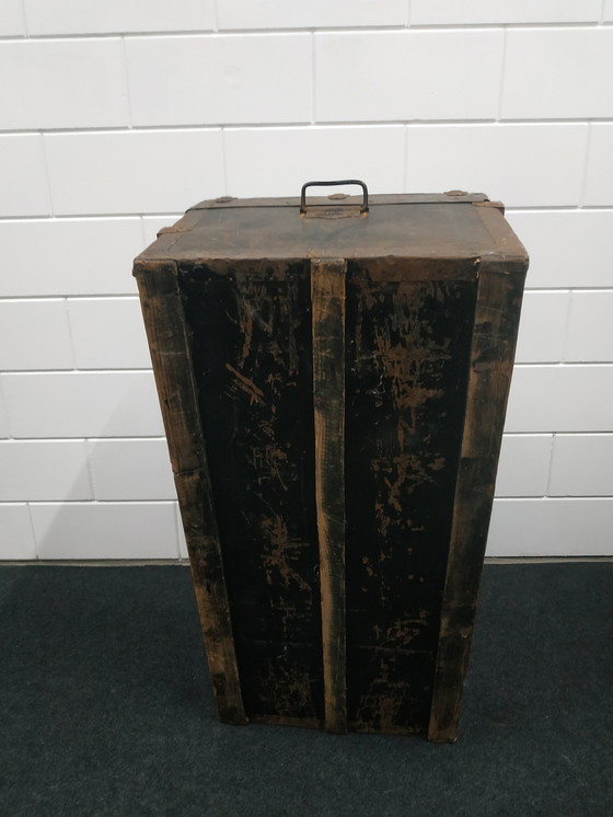 Très belle malle de voyage ancienne compte tenu de son âge. En bois avec un cadre en métal, le métal et le bois ne sont pratiquement pas abîmés. Marques d'usage à l'intérieur, en rapport avec l'utilisation et l'âge. Peut être utilisée comme objet décoratif, éventuellement comme table ou table d'appoint ou encore comme coffre à couvertures ou à vêtements. Les clés ne sont pas présentes.