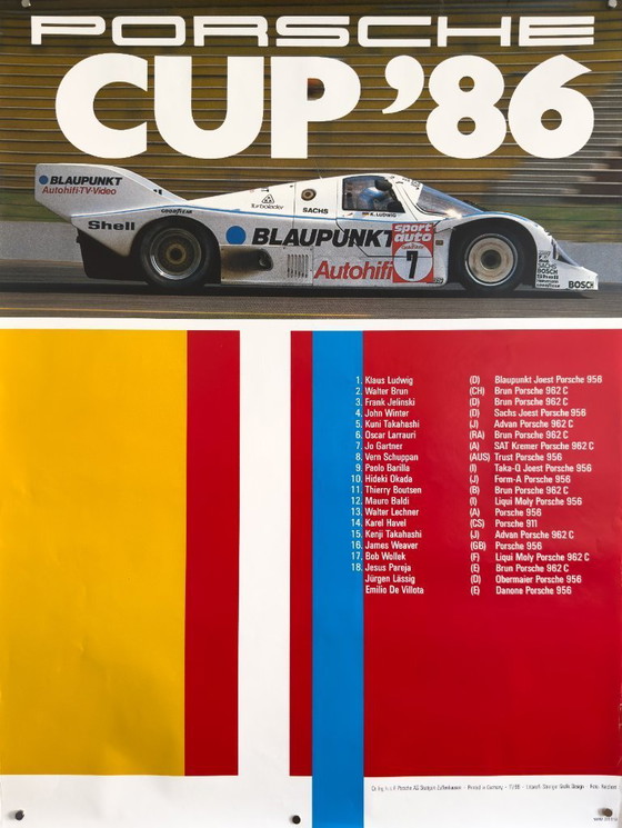 đ Original Porsche "CUP '86" Racing Poster - Joest / Brun / Blaupunkt | XL 102x76cm Plakat