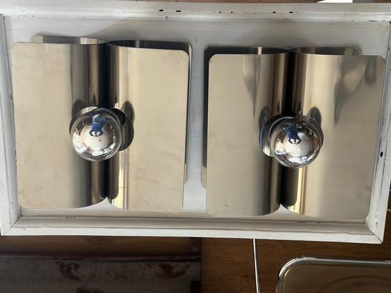 Paire d’appliques Harvey Guzzini Italie - Metal Chromé - Space Age années 70