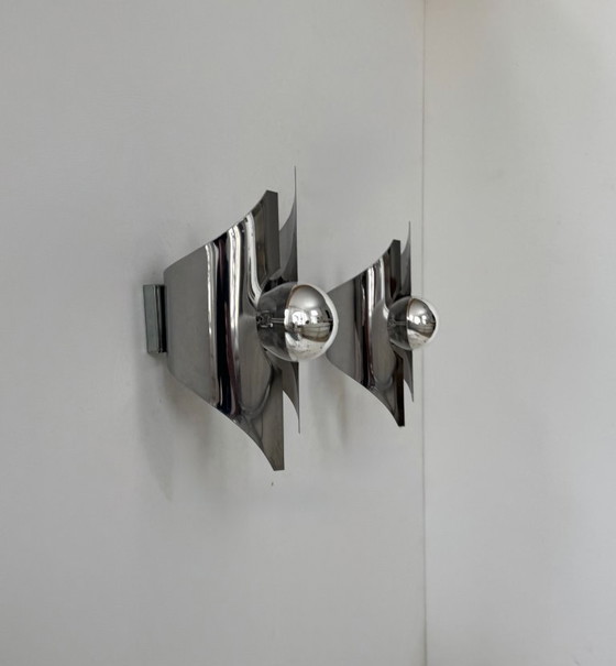 Paire d'appliques en métal chromé, produite en France dans les années 70.