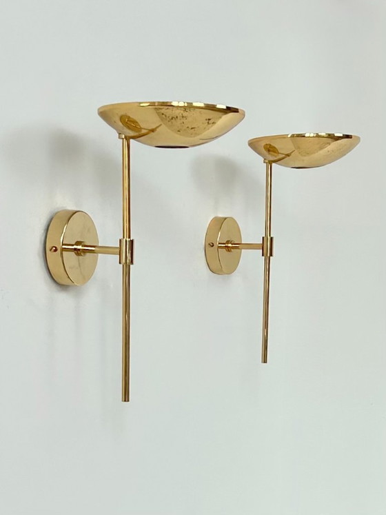 Très grande paire d'appliques composée d'une structure en laiton et verre, produite en France dans les années 80.