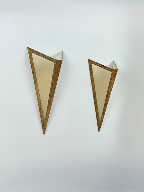 Paire d'appliques XL en métal doré et parchemin, France, 1970